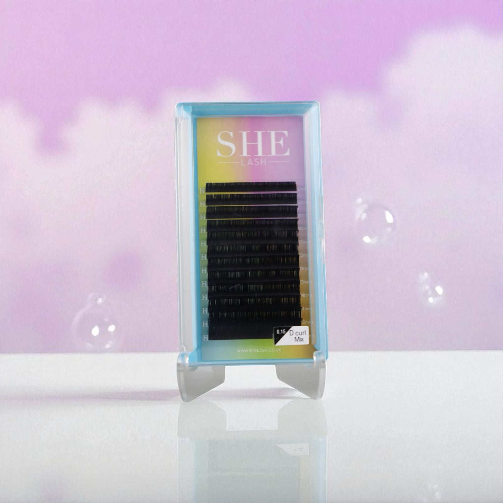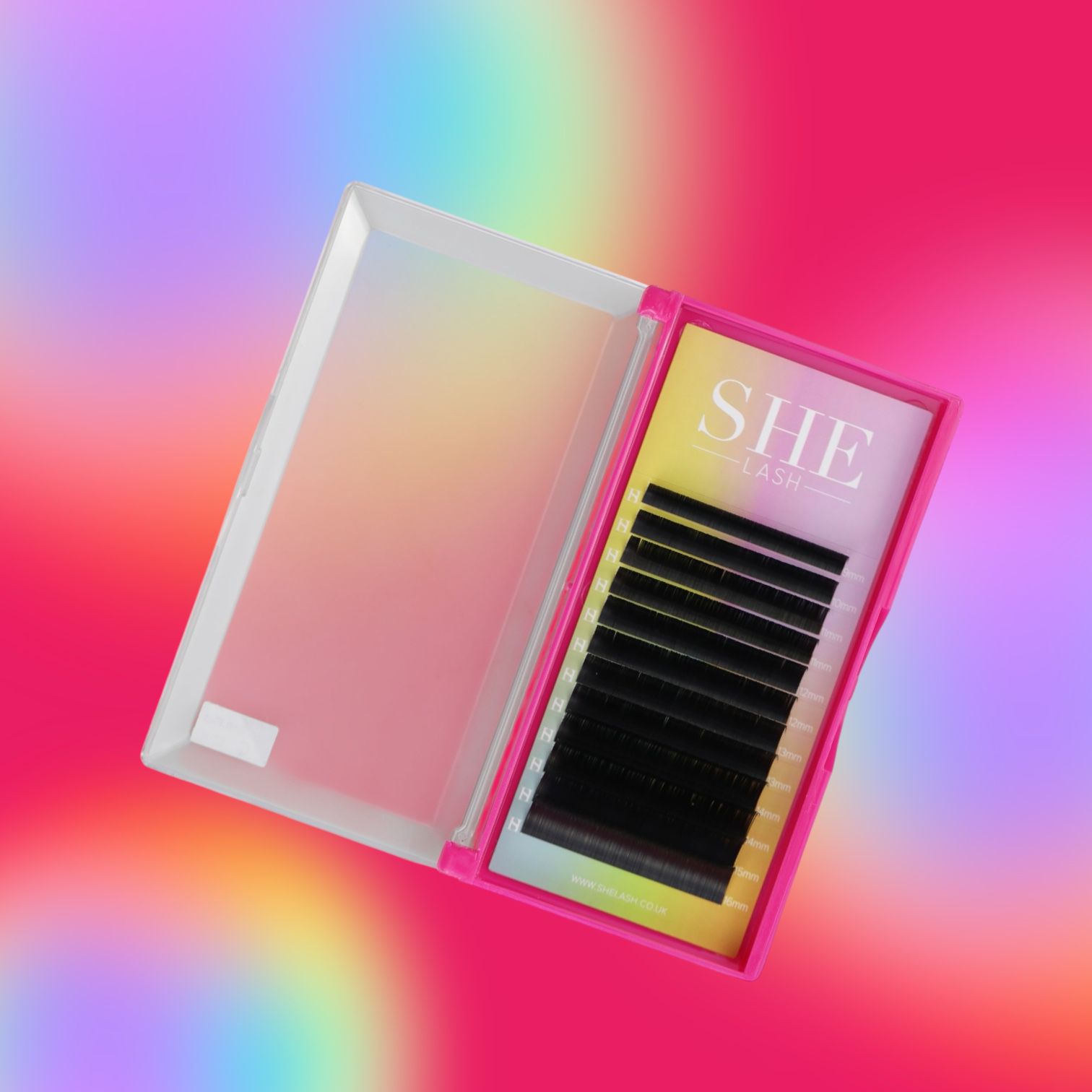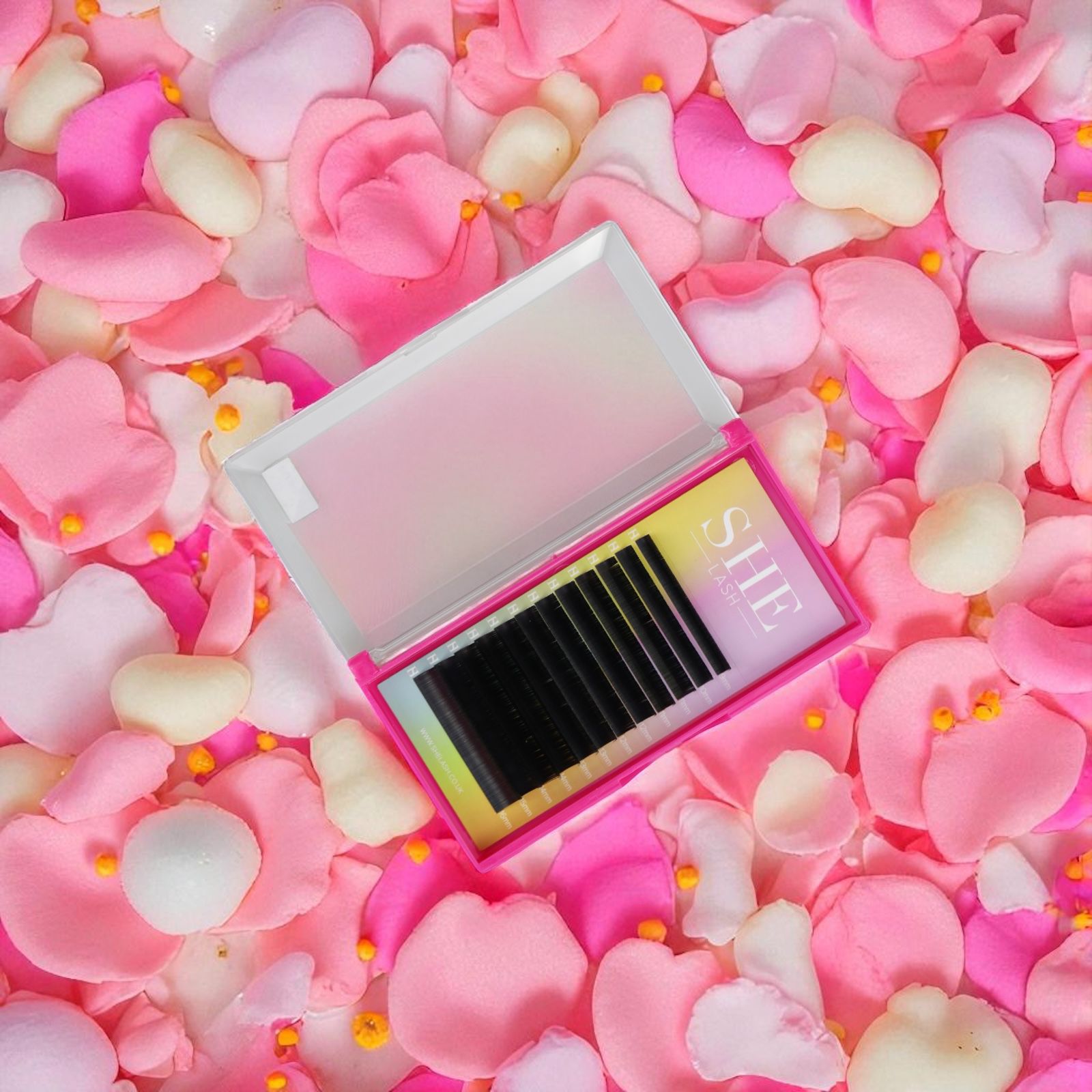 Our SHE 0.15 classic lashes are crafted from the highest PBT material, then shaped and curled to replicate a natural eyelash.These extensions give the most realistic look of human natural lashes while remaining lightweight and comfortable to wear the SHE way.