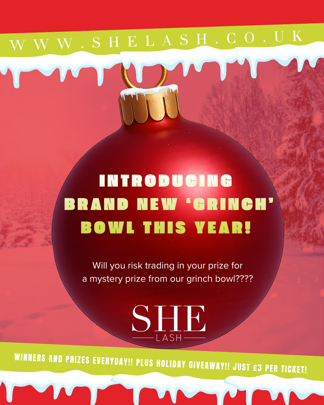 If you win, you can keep the prize OR swap it for a random mystery prize from the Grinch Bowl — could be amazing… could be chaos 😈🎄