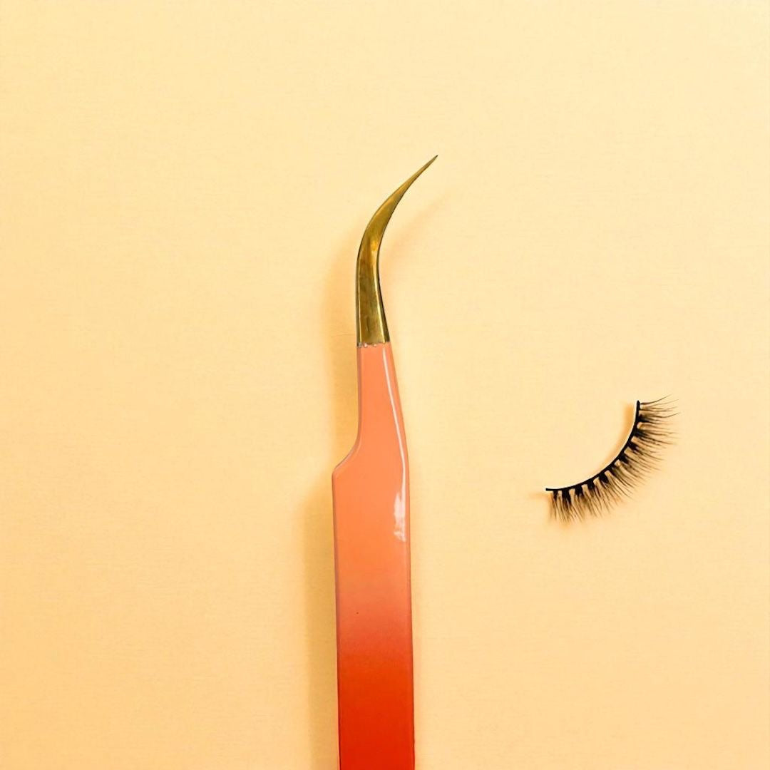 Stainless steel wrapped in a silky ombré orange film for lash artist comfort.